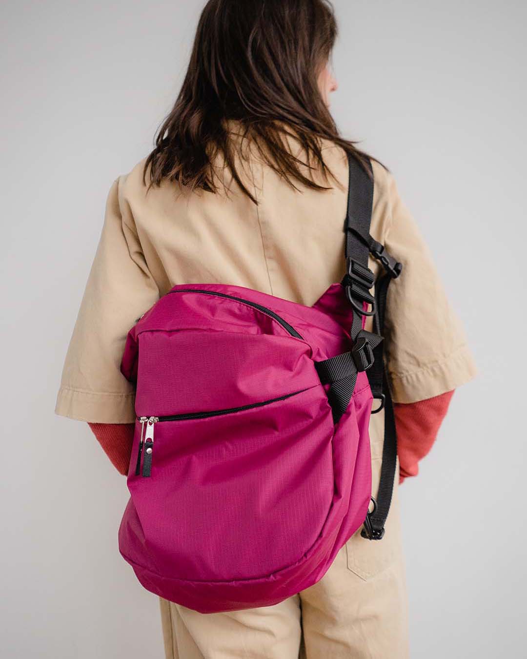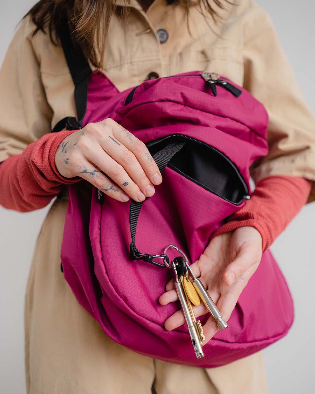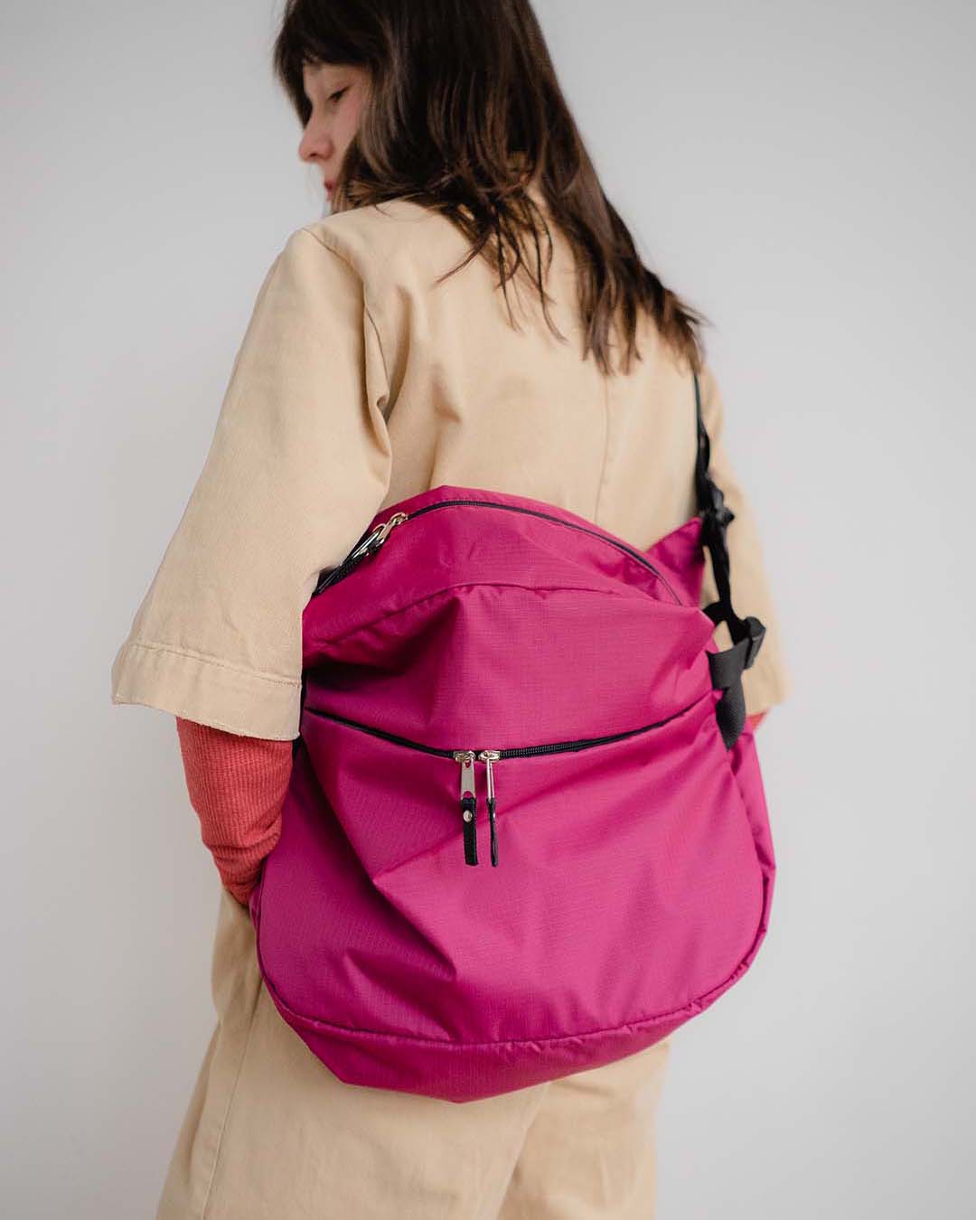 18х18х7см +5см клапан • Карман из сетки спереди, • Карман на магните сзади, • Большое основное отделение на утягивающемся клапане для быстрого доступа (подклад из основного отделения можно вывернуть, что бы вытряхивать крошки)