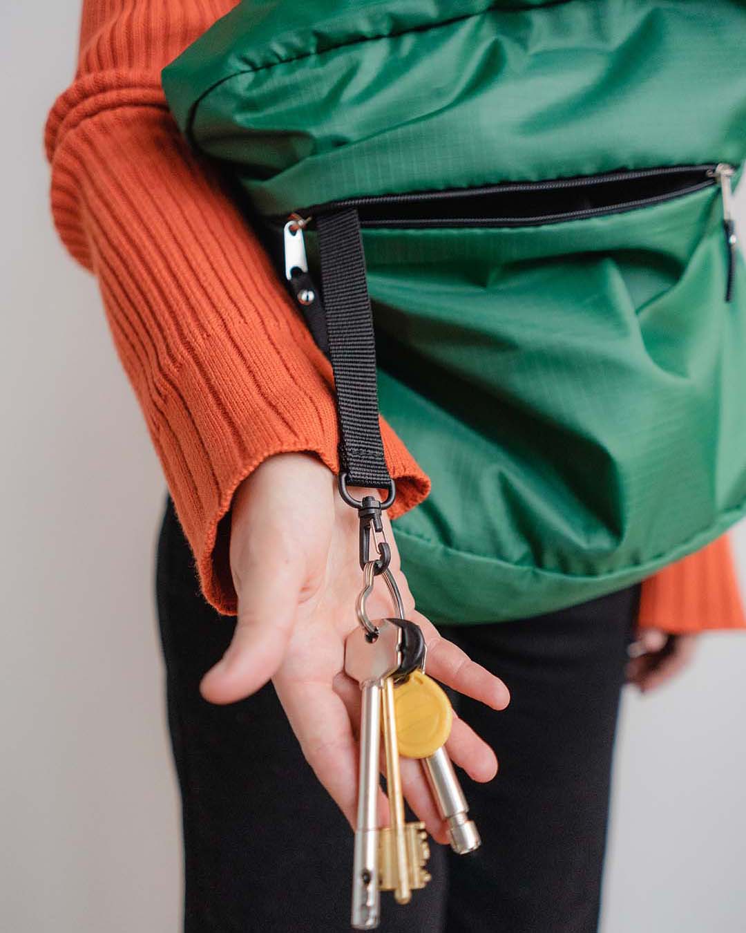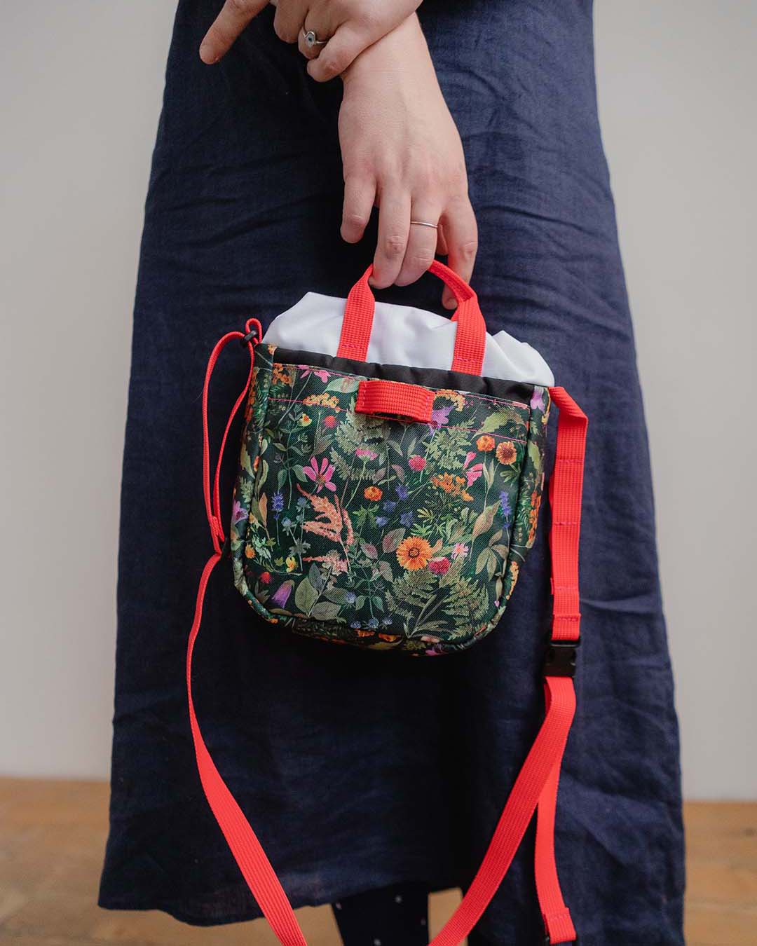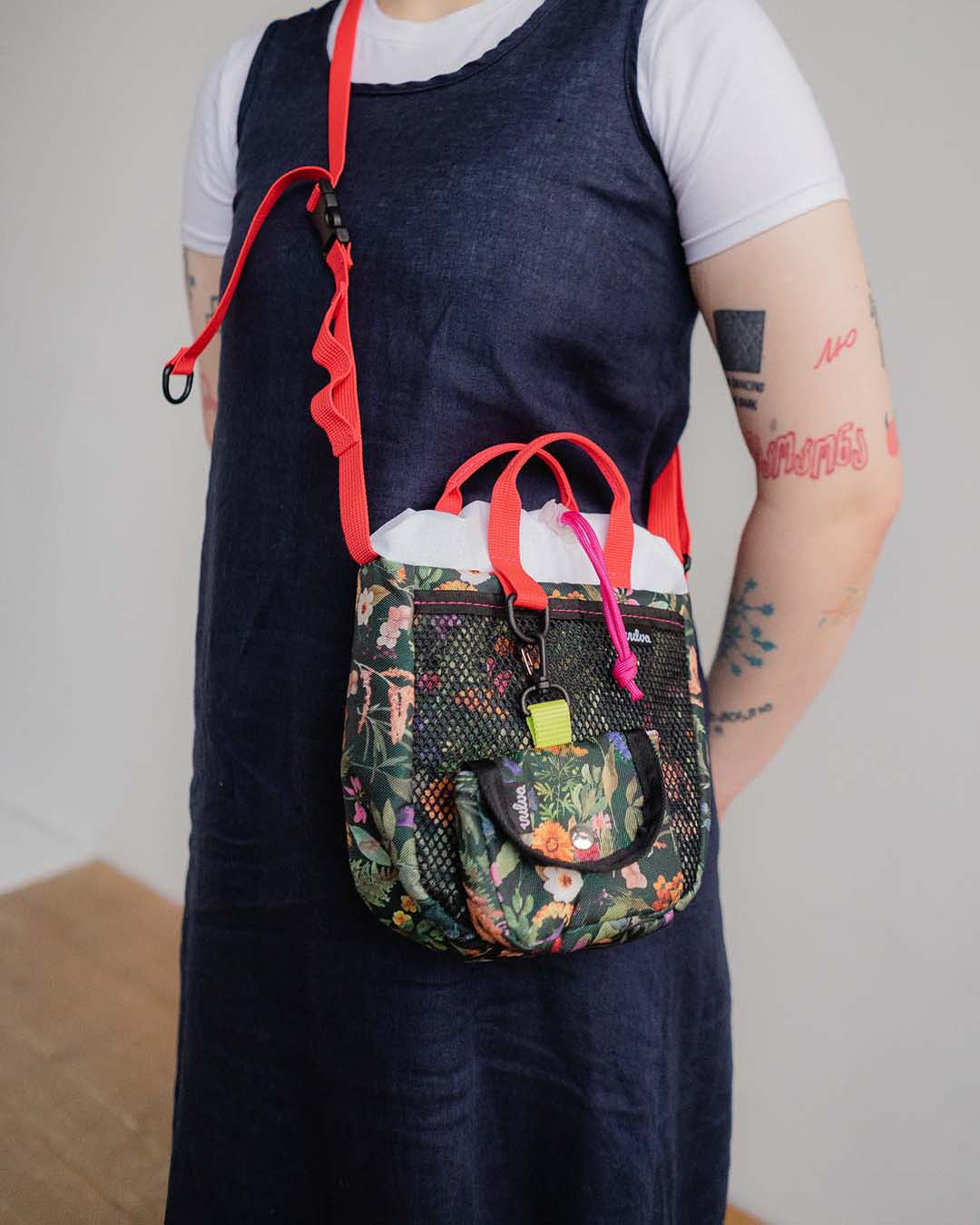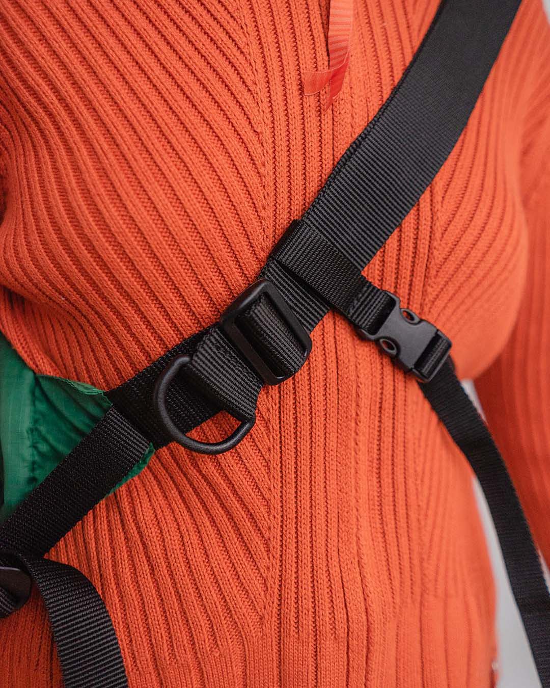 Можно носить в развернутом виде или скрутить верх и сцепить углы карабином. Основной ремешок на карабинах и регулируется по длине, можно отсоединить от сумки.